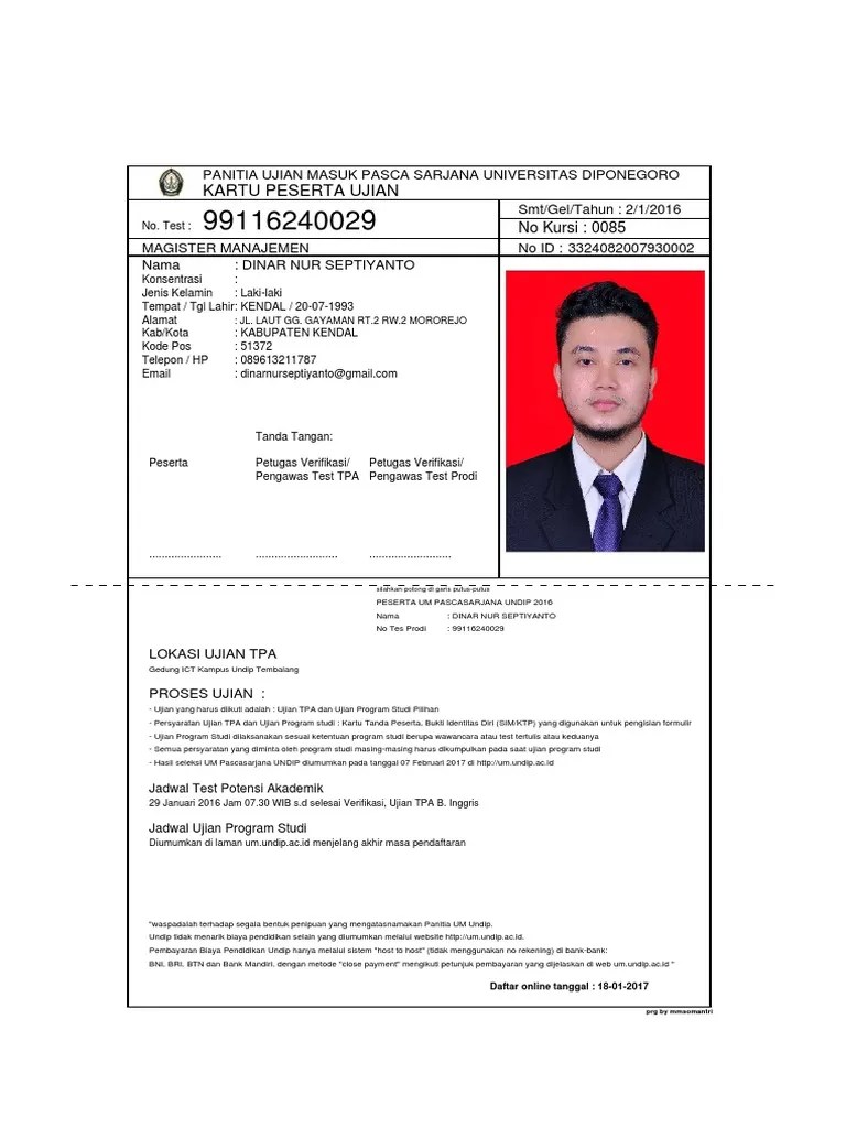 Setelah mencetak kartu peserta ujian, calon peserta tidak bisa mengedit kembali data yang telah diisikan 1 contoh kartu peserta mandiri. Melakukan verifikasi (pengesahan) pendaftaran 1 .