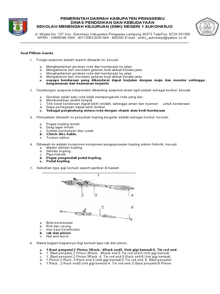 Latihan soal un teori kejuruan teknik sepeda motor beserta. Penulis menyukai hal mengenai bisnis keuangan internet marketing otomotif pendidikan. Memilih satu jawaban benar dari tiap soal. Kumpulan soal produktif otomotif beserta jawaban . Doc k3 soal dan jawaban docx buana ridho academia edu .